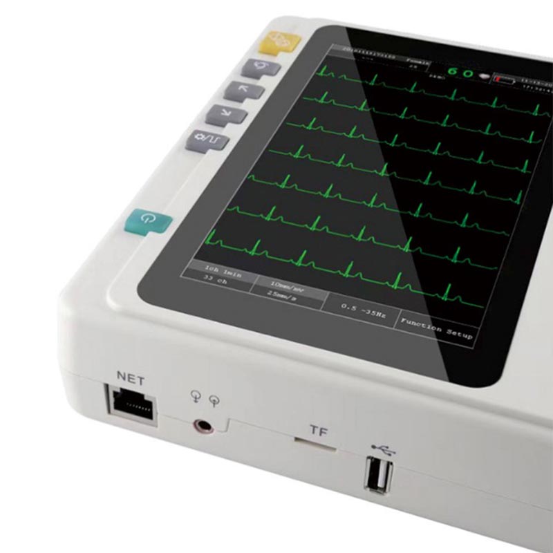 1. เครื่องตรวจคลื่นไฟฟ้าหัวใจ HTSY® มาพร้อมกับหน้าจอสัมผัสสีความละเอียดสูงขนาด 7 นิ้ว หน้าจอมีความสูง ความละเอียดและการสร้างสีที่ยอดเยี่ยม อินเทอร์เฟซการดำเนินการนั้นเรียบง่ายและชัดเจนพร้อมรูปแบบที่เหมาะสม ทั้งหมด ปุ่มฟังก์ชั่นสามารถระบุได้ชัดเจน การดำเนินการนี้ใช้งานง่ายเป็นพิเศษและควบคุมได้ง่าย แม้แต่ในทางการแพทย์ก็ตาม พนักงานที่ยังใหม่กับอุปกรณ์ ในขณะเดียวกัน การตอบสนองของหน้าจอก็มีความละเอียดอ่อนอย่างยิ่ง คลิกและเลื่อน ไม่มีความล่าช้าหรือล่าช้า เมื่อบุคลากรทางการแพทย์ดูภาพคลื่นไฟฟ้าหัวใจจะมองเห็นรายละเอียดได้ชัดเจนและ รูปคลื่นเรียบและต่อเนื่อง ไม่จำเป็นต้องปรับพารามิเตอร์ซ้ำๆ ซึ่งช่วยปรับปรุงได้อย่างมาก ความสะดวกในการดำเนินงาน